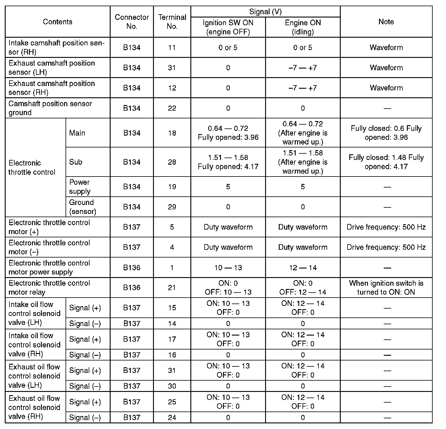 - Intake camshaft position sensor LH