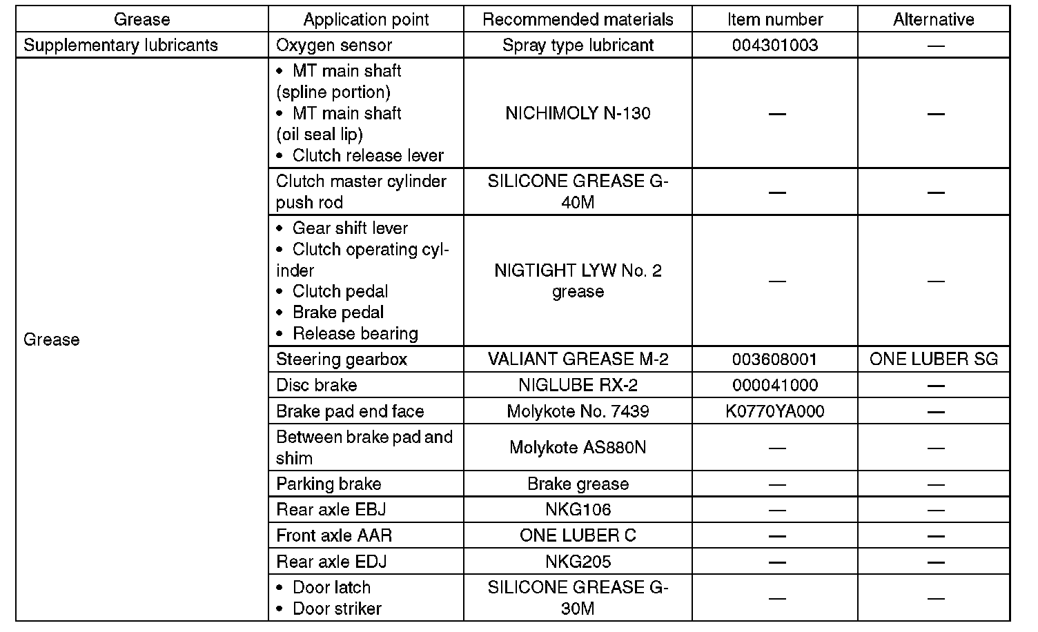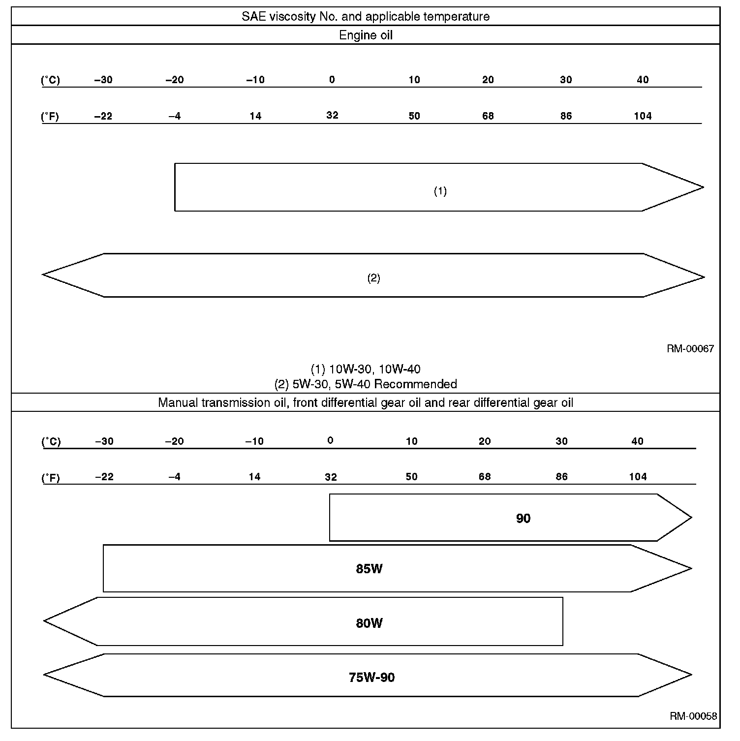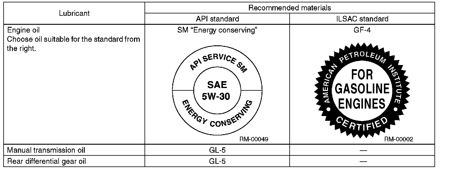 Use the lubricants shown in the table below, or equivalent. See the table below to choose the correct SAE viscosity.