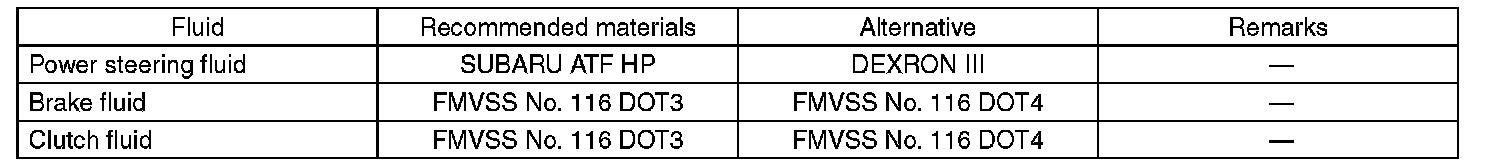 Use the fluids specified in the table below. Do not mix two different kinds or makes of fluid.