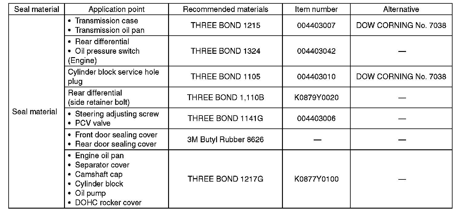 To insure the best performance, always use the specified oil, gasoline, adhesive, sealant, etc. or a substitute of equivalent quality.