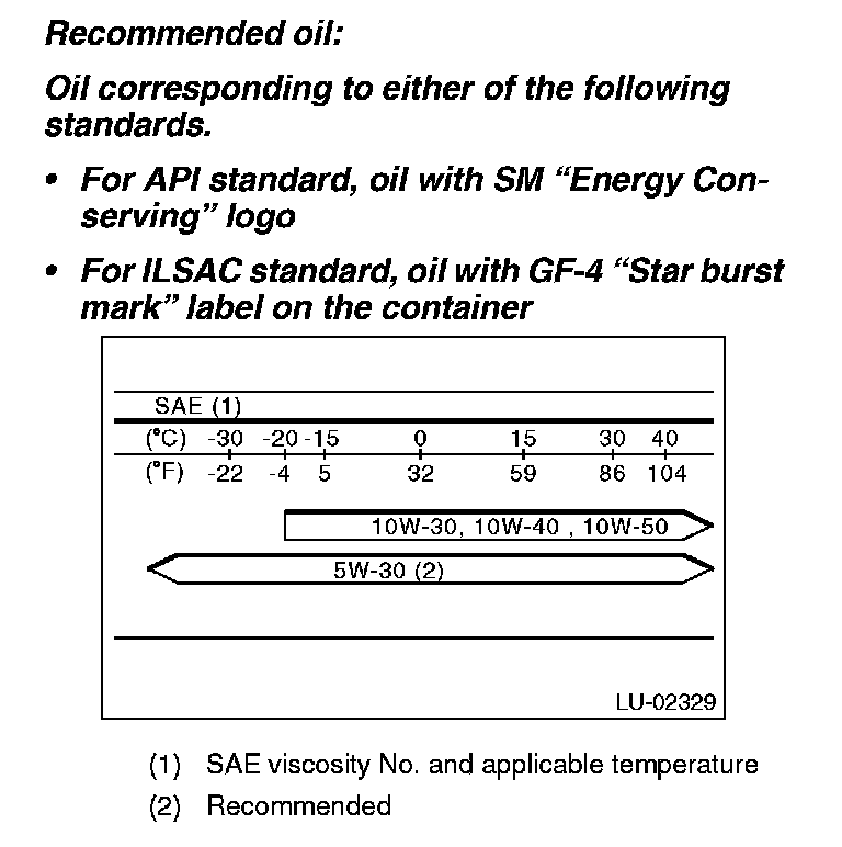 ^ If the vehicle is used in regions of high temperatures or in other severe environments, use oil with the viscosities shown below.