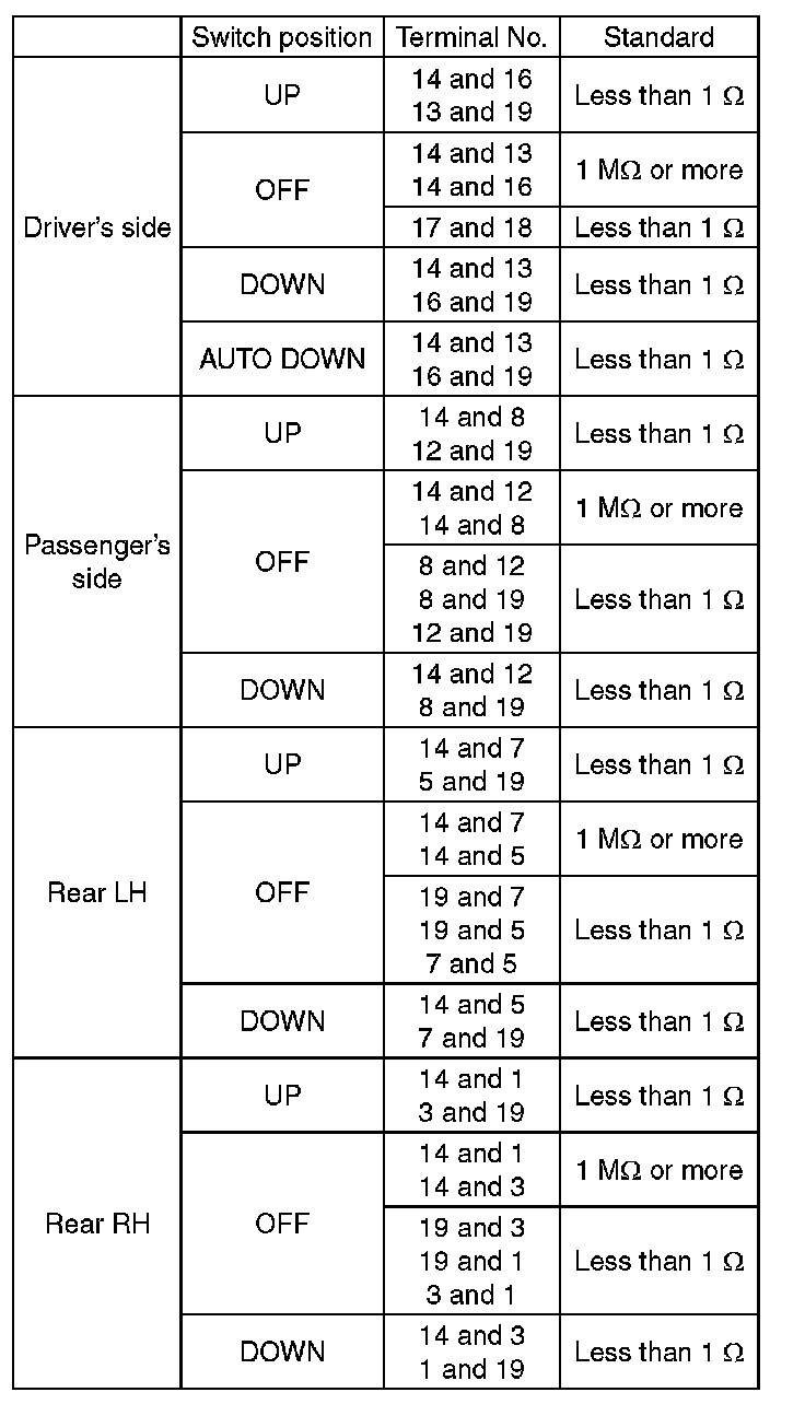 POWER WINDOW CONTROL SWITCHINSPECTION