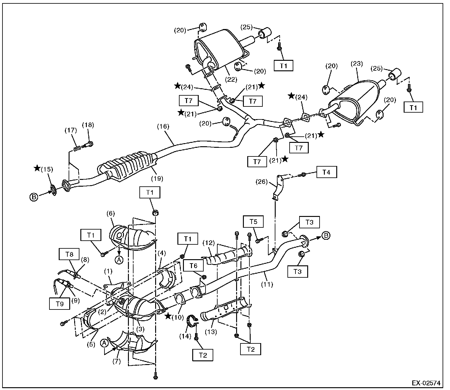 Center and Rear Exhaust Pipe, and Muffler (Part 2):