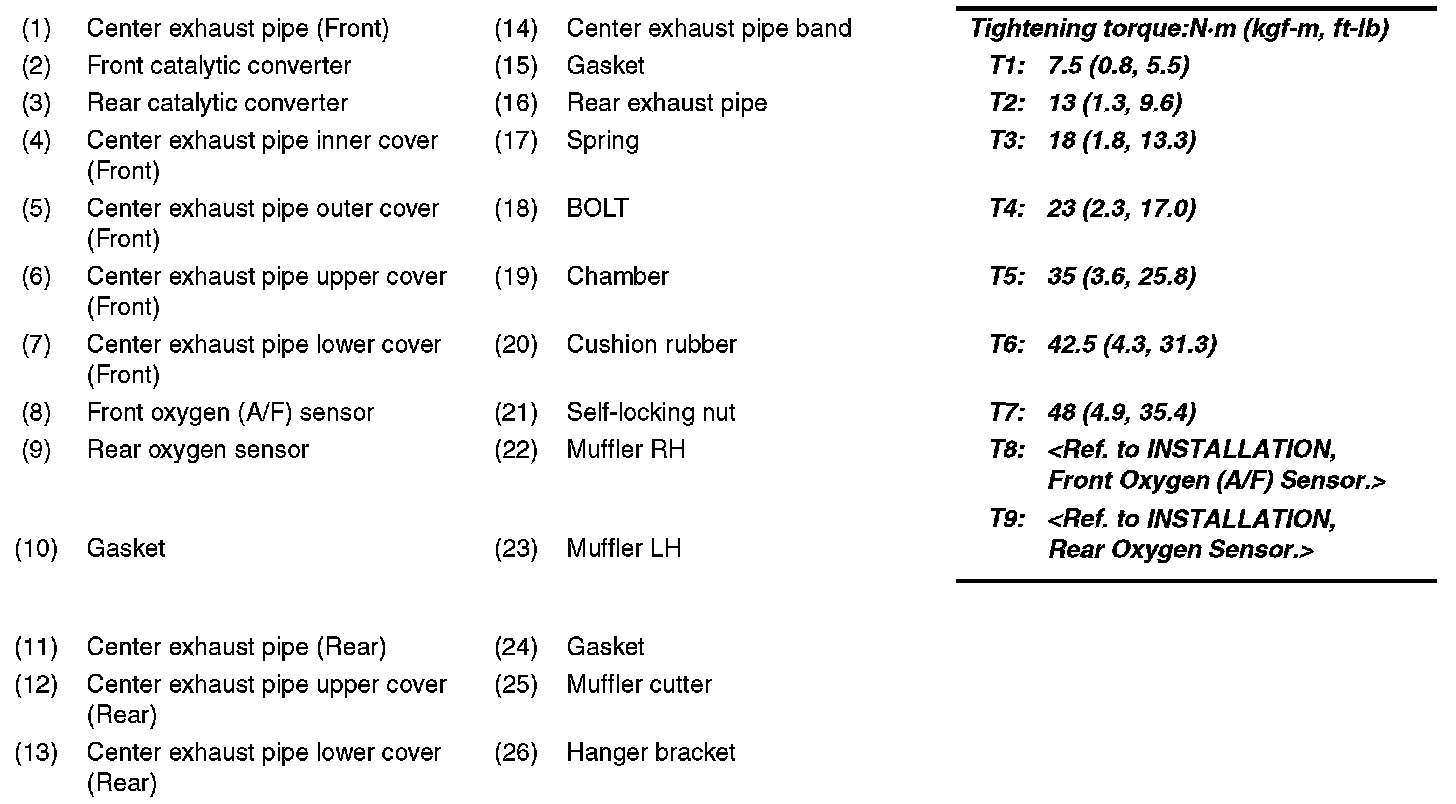Center and Rear Exhaust Pipe, and Muffler (Part 1):