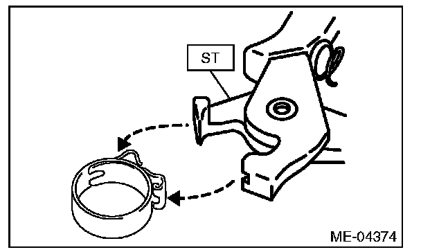 2) Insert ST3 into the service hole to align the piston pin hole and the connecting rod small end.