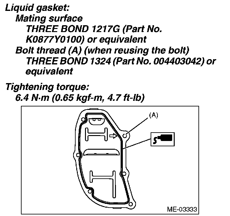THREE BOND 1105 (Part No. 004403010) or equivalent