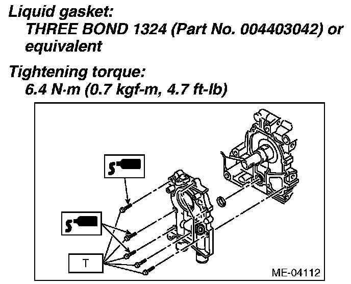 5) Apply liquid gasket to the three bolts thread shown in figure. (when reusing bolts)