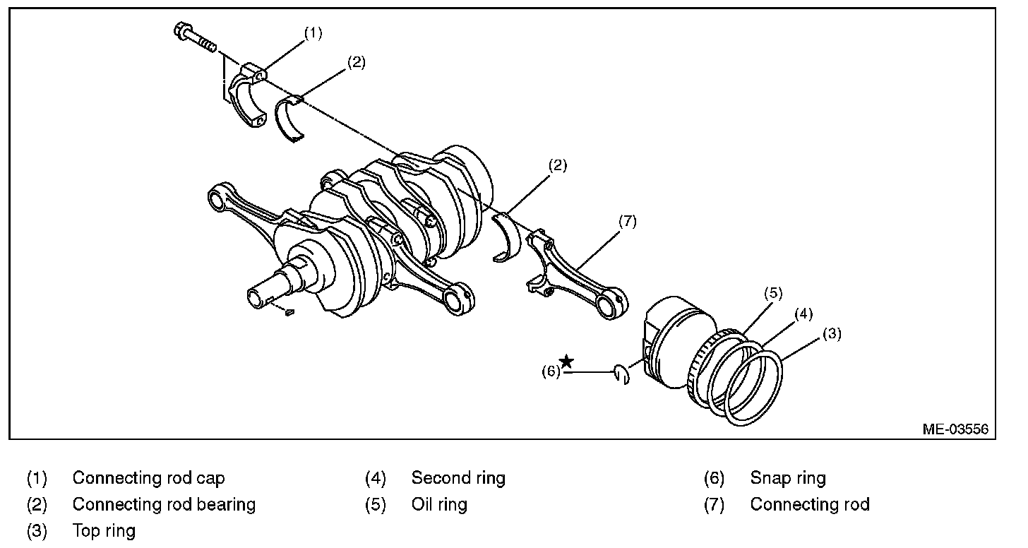 5) Check the piston pin snap ring for distortion, cracks and wear.