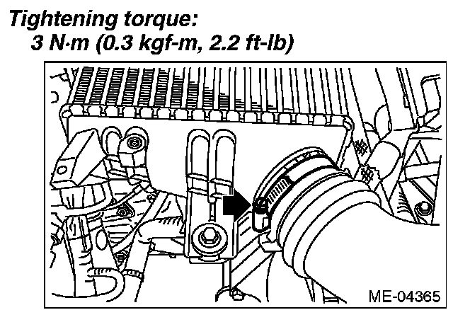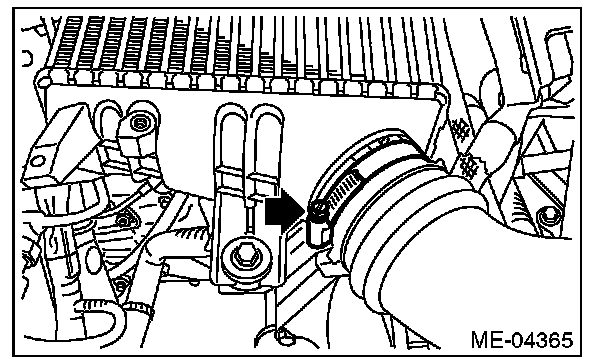 2) Loosen the clamp which holds the intake duct to intercooler.