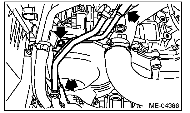 10) Remove the bolts which secure the intake duct to the turbocharger, and remove the air bypass valve from the intake duct.