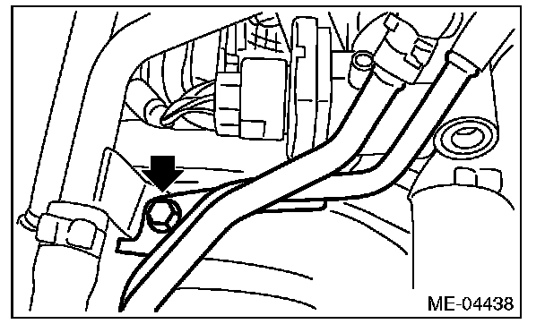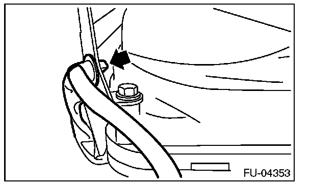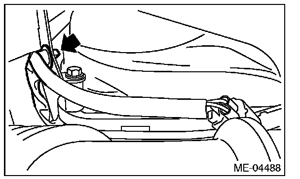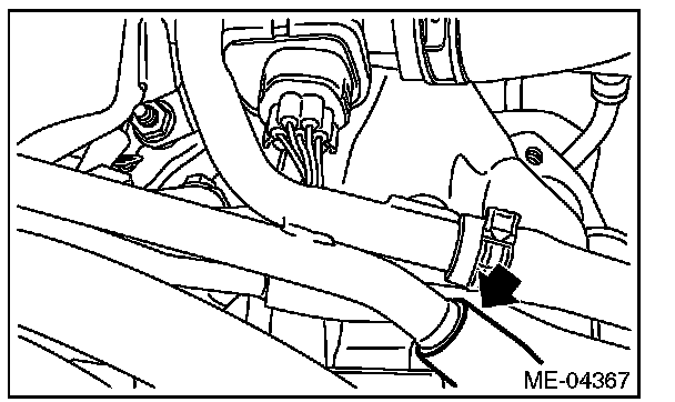 4) Remove the clip which holds the engine harness to the hose clip stay assembly.