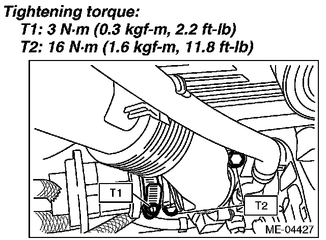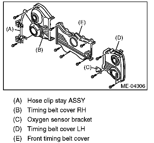 5) Loosen the remaining bolts which secure timing belt cover LH, and remove the timing belt cover LH together with the oxygen sensor bracket.