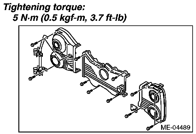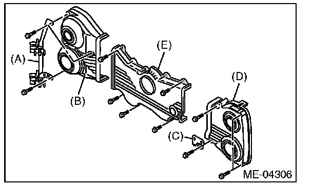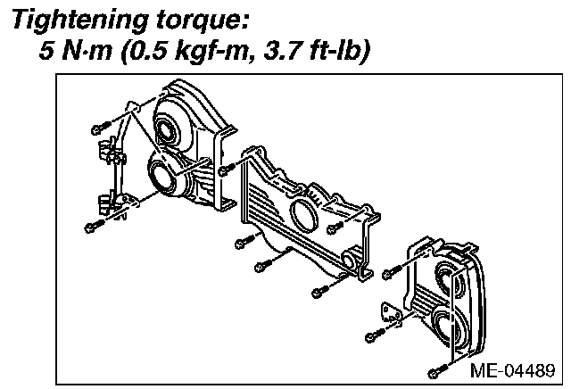 4) Remove the bolts securing the front timing belt cover, and remove the front timing belt cover.