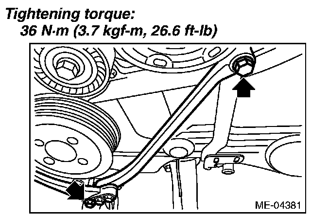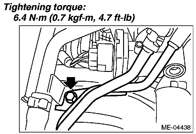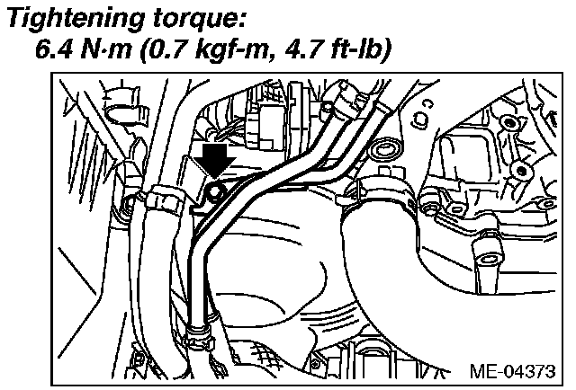 7) Mount the power steering pump together with the power steering pump bracket on RH side wheel apron.