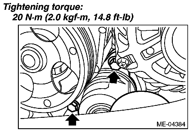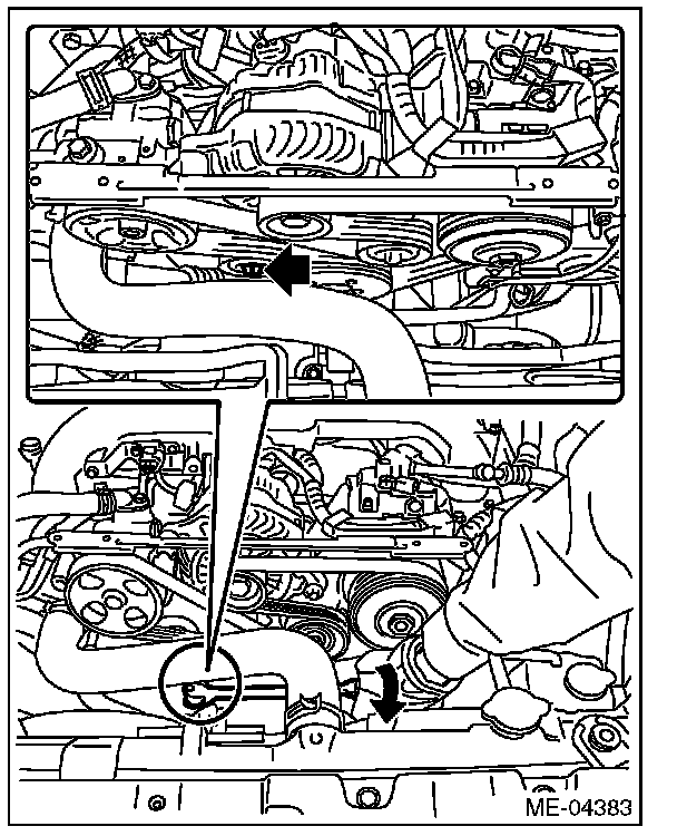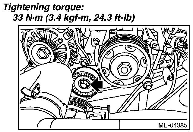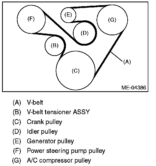 3) Check that the V-belt tensioner assembly and idler pulley do not have deformation, cracks or other damages.