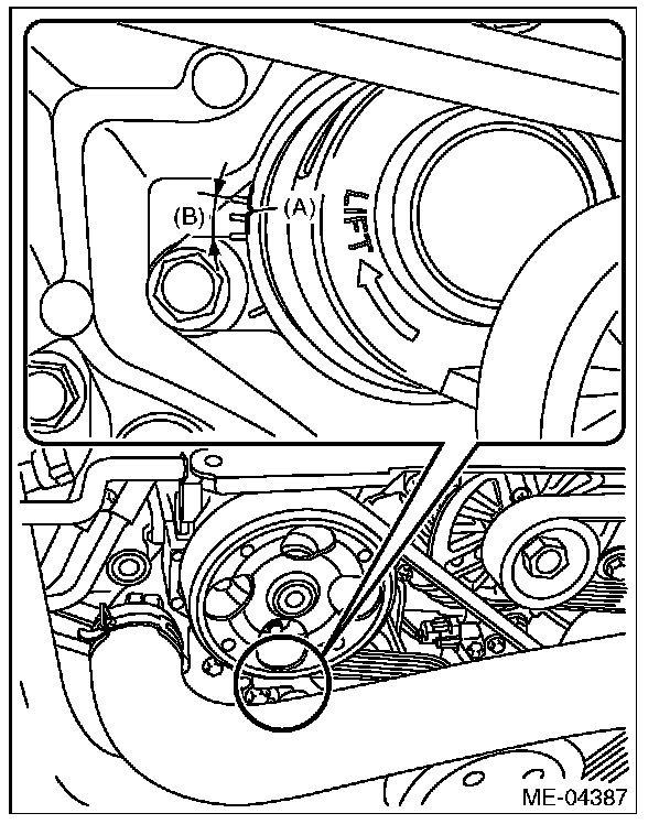 4) Check the V-belt tension indicator (A) shows within the limit (B).