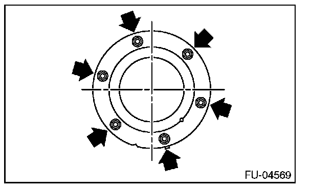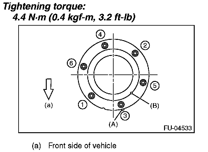- After tightening the bolts to the specified torque in the order indicated in the figure, install the fuel sub level sensor protector.