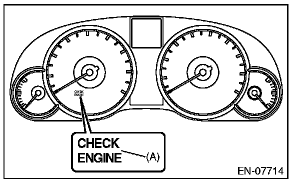 ACTIVATION OF MALFUNCTION INDICATOR LIGHT1. When the ignition switch is turned to ON (engine OFF), the malfunction indicator light (A) in the combination meter illuminates.