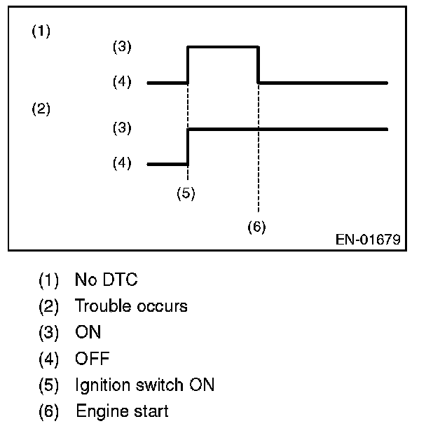 2. After the engine starts, malfunction indicator light blinks in a cycle of 0.5 Hz. (During diagnosis)