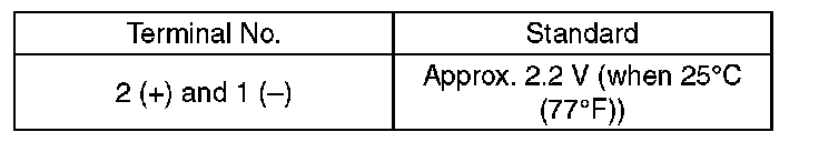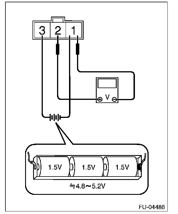 2. Connect dry-cell battery positive terminal to terminal No. 3 and dry-cell battery ground terminal to terminal No. 1, circuit tester positive terminal to terminal No. 2 and the circuit tester negative terminal to terminal No. 1.