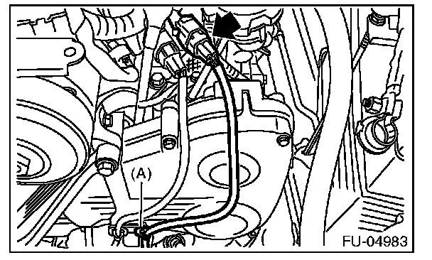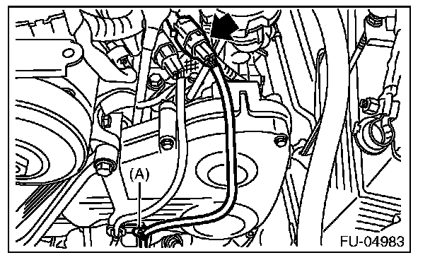 3. Connect the connector to the rear oxygen sensor, and hold the rear oxygen sensor harness with clip (A).