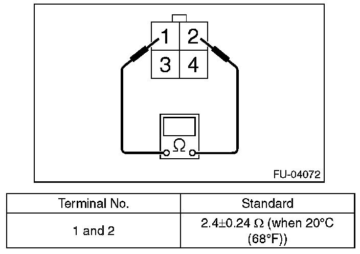 Measure the resistance between front oxygen (A/F) sensor terminals.