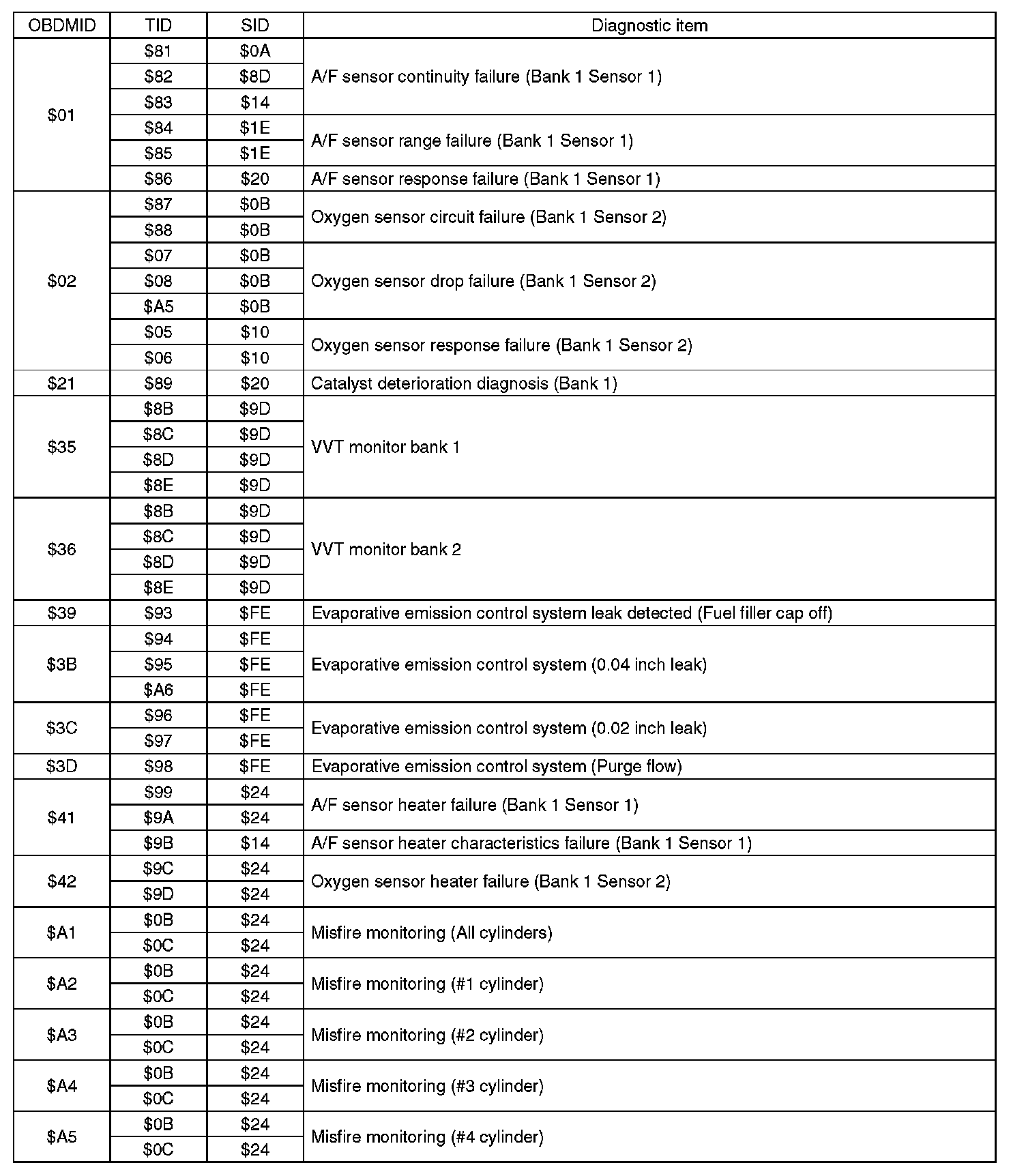 Refer to test value of troubleshooting and data of test limit indicated on the support data bit sequence table. A list of the support data is shown in the following table.
