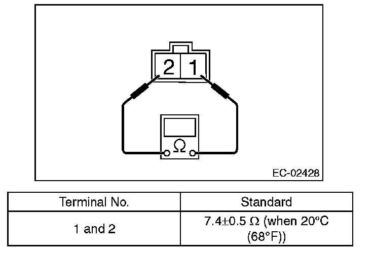 2. Measure the resistance between the oil flow control solenoid valve terminals.