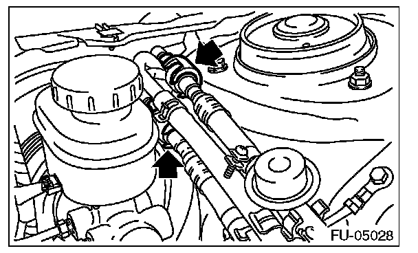 5. In the engine compartment, disconnect the fuel delivery hoses, fuel return hoses and evaporation hoses.