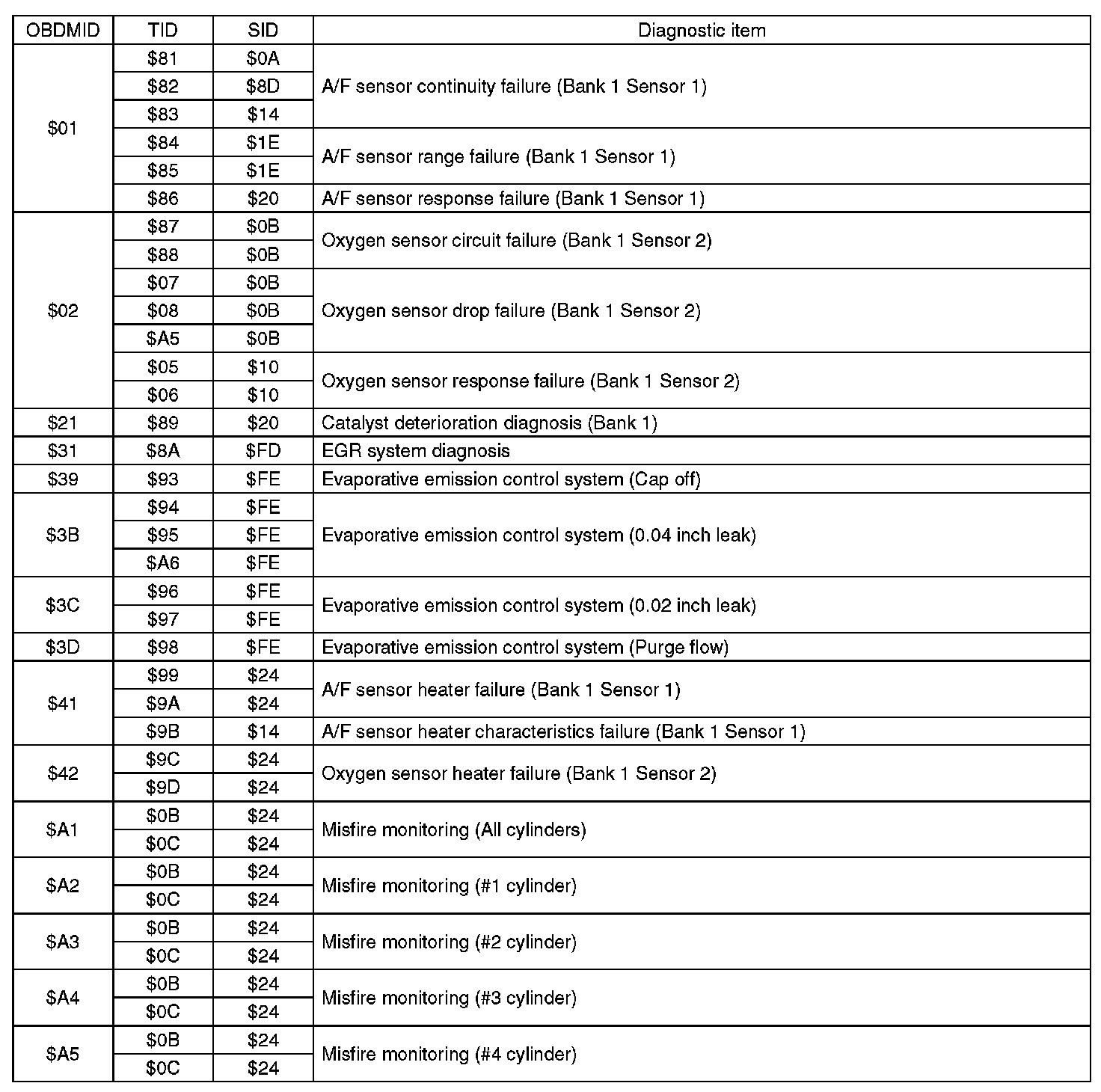 Refer to test value of troubleshooting and data of test limit indicated on the support data bit sequence table. A list of the support data is shown in the following table.