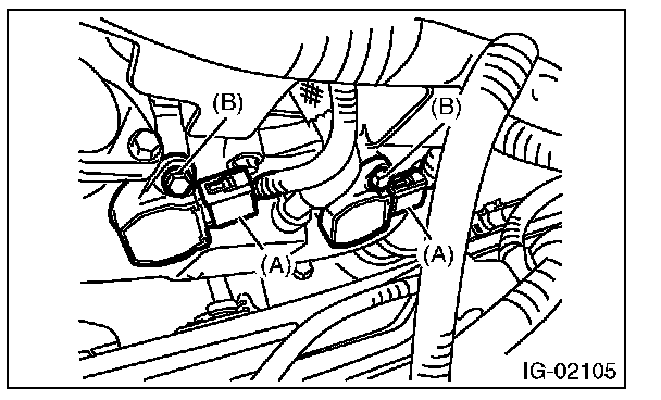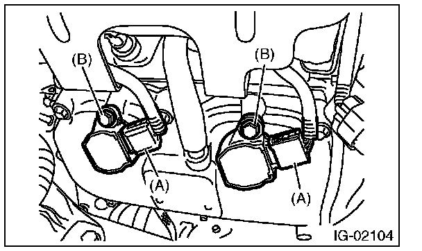 4. Remove the bolt (B), and remove the ignition coil.