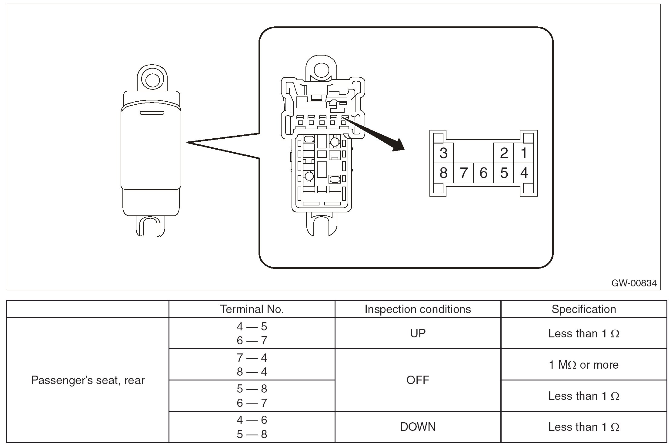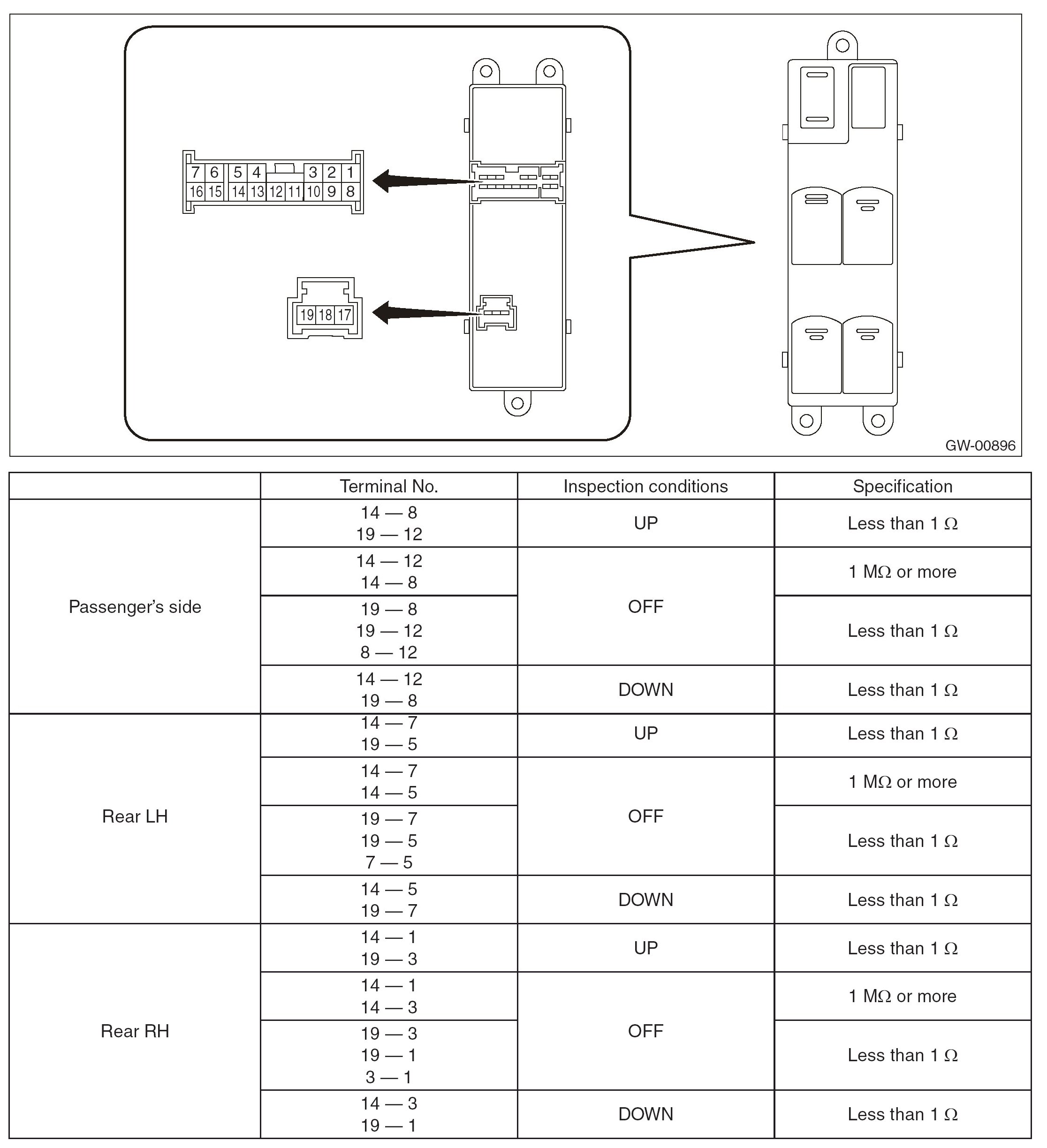 4. Replace the power window main switch if the inspection result is not within the standard value.