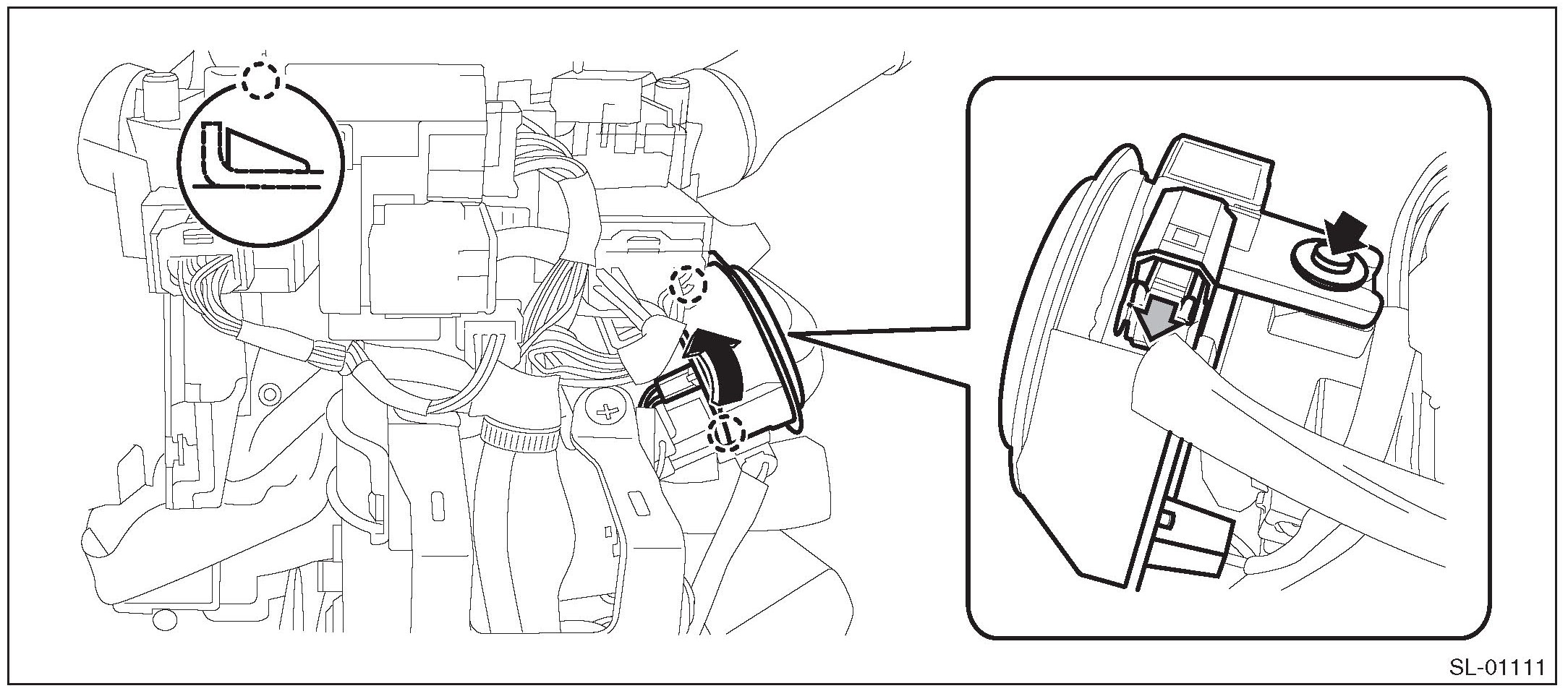 CAUTION: Do not apply excessive force to remove the immobilizer antenna and lock. Otherwise they may be broken because those parts are the products made of a plastic.