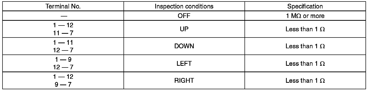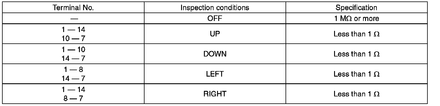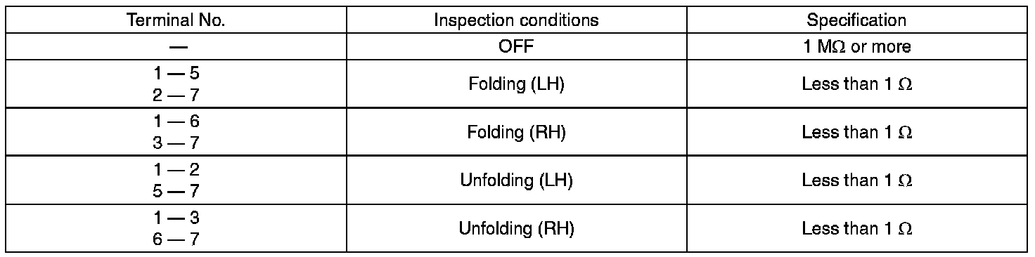 3. Replace the remote control mirror switch if the inspection result is not within the standard value.