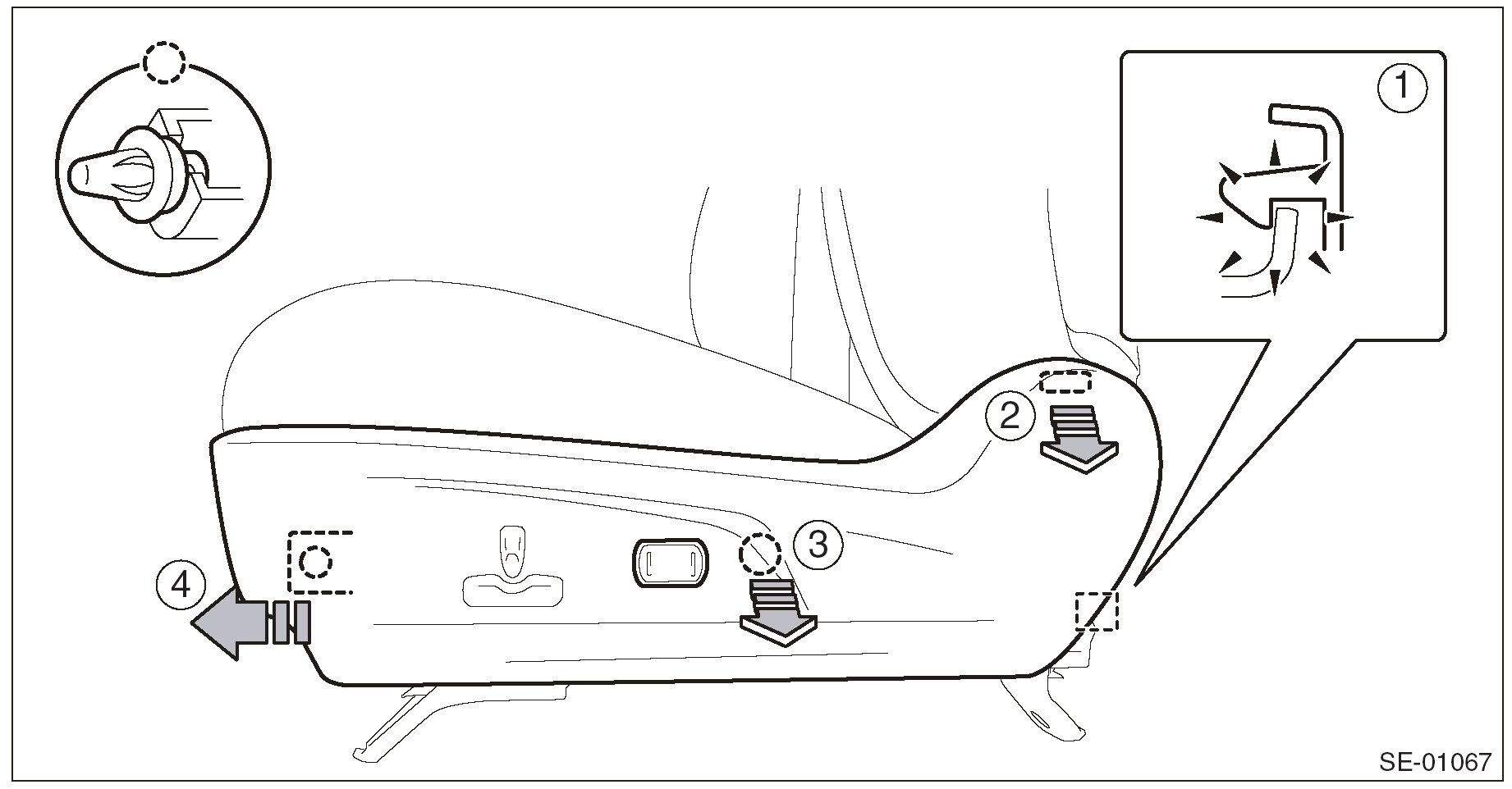 3. Remove the clip and release the claw in the front section of the seat side cover