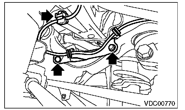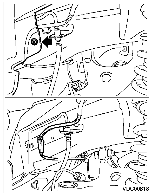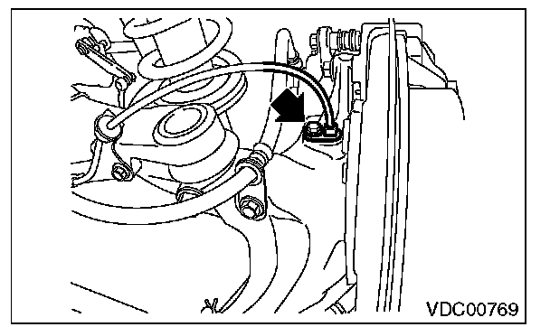 2) Remove the clips, turn over the mud guard, and disconnect the rear ABS wheel speed sensor connector.