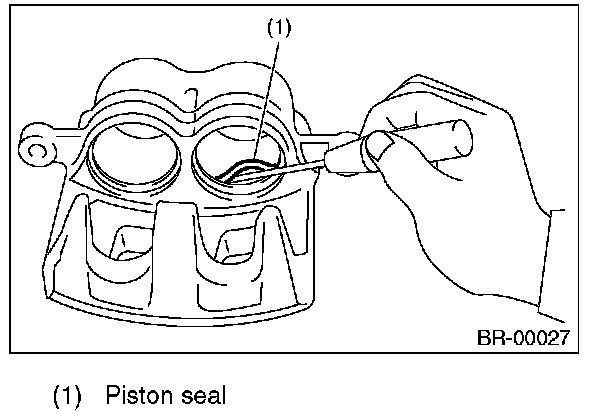 3) Gradually apply compressed air via the brake hose installation hole to push the piston out.