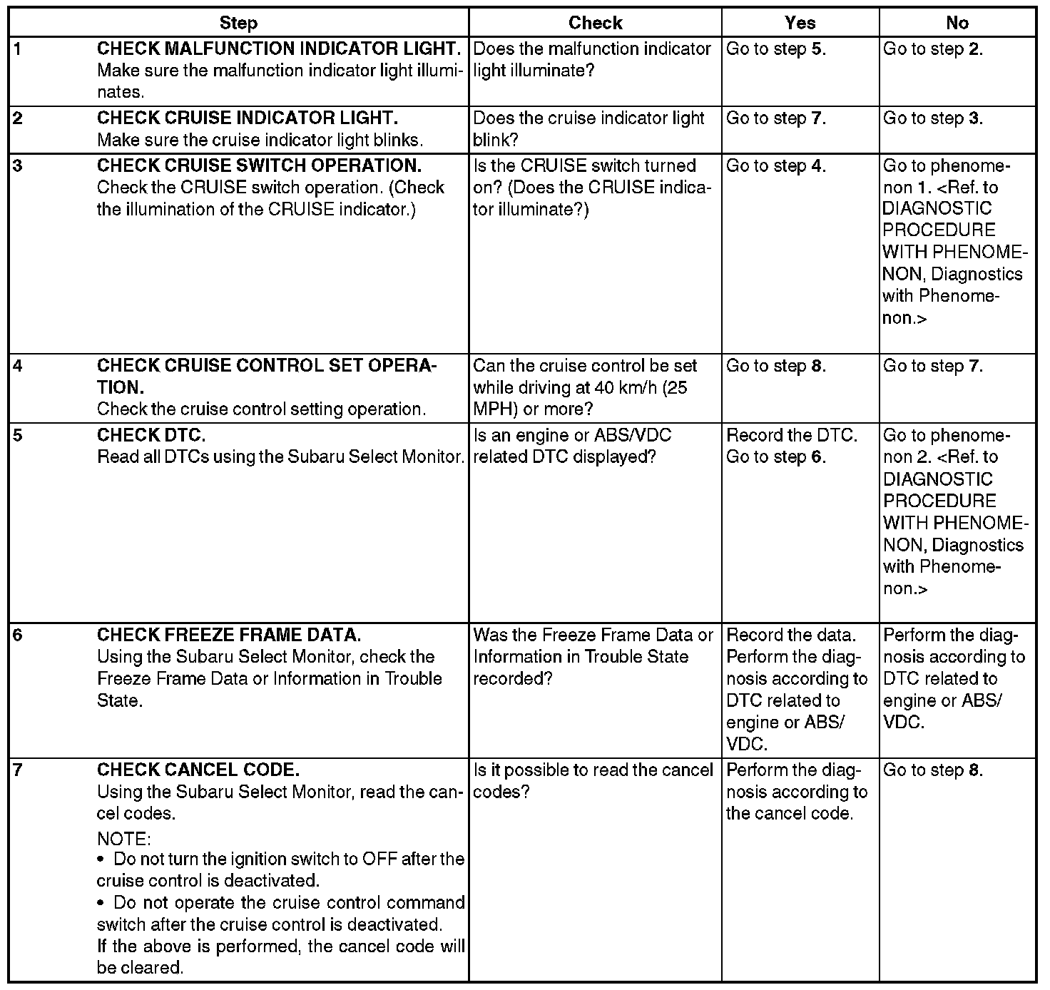 - The cancel code will also appear when cruise control is cancelled by the driver s operation. Do not confuse them.