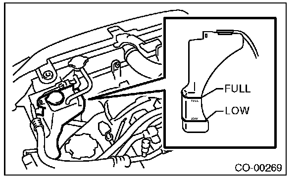 3) Fill engine coolant into the reservoir tank up to "FULL" level.