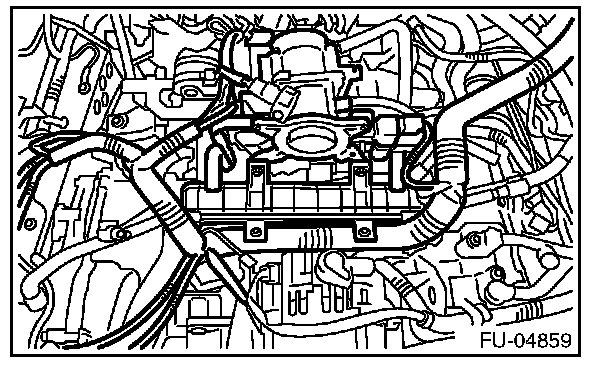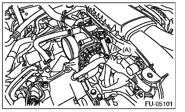 20. Remove the bolt (A) on RH side securing multifunction duct assembly to the intake manifold.