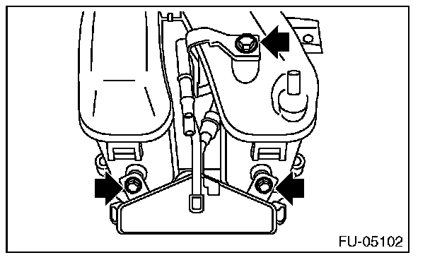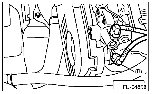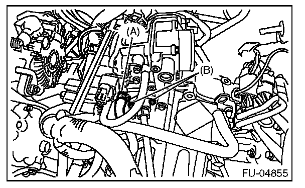 10. Disconnect the fuel delivery hose (A) and evaporation hose (B).