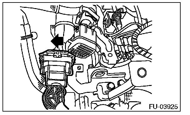 10. Slide the engine harness connector in the direction of the arrow and remove it from the rear engine hanger.