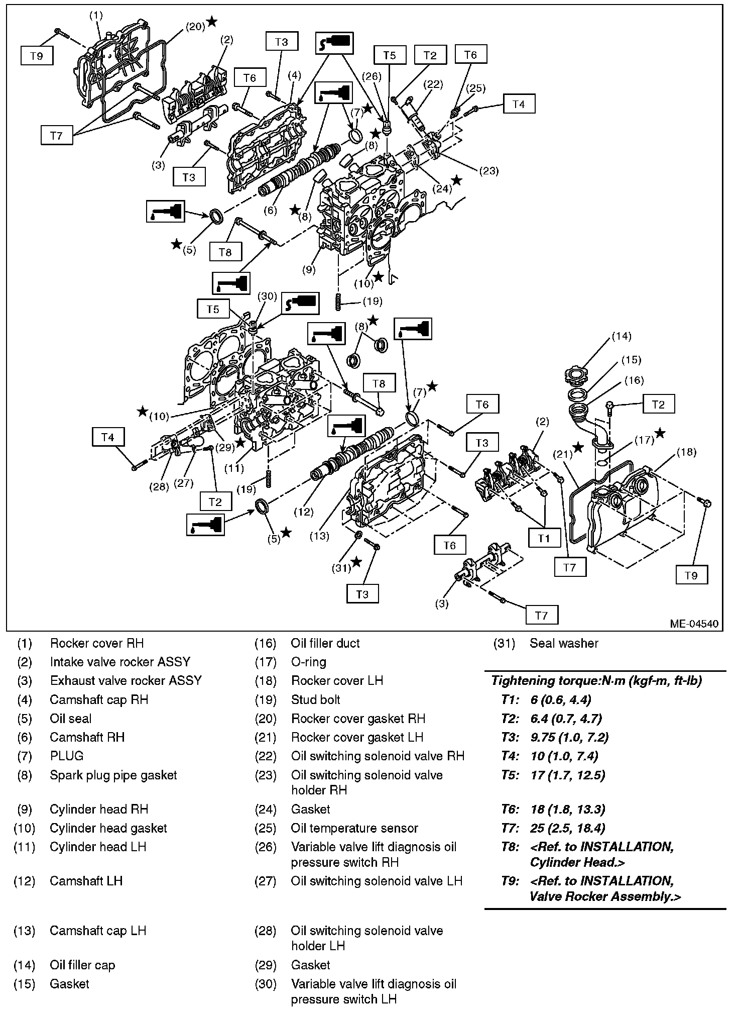 Valve rocker arms, and rocker shaft have identification marks. Make sure the parts with same markings are properly assembled.