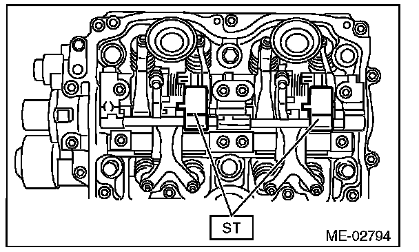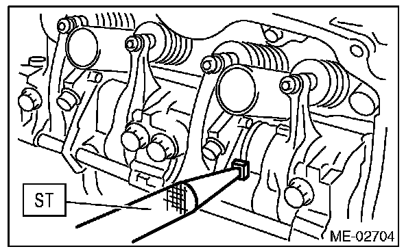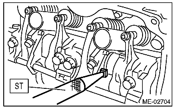 Set the ST in the position shown in the drawing to remove the intake valve rocker assembly.
