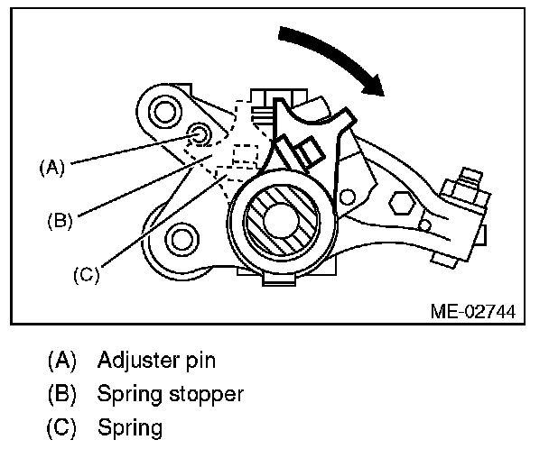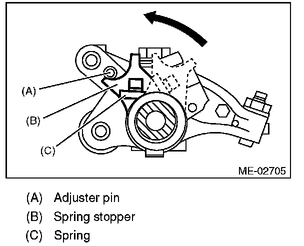 1) Use the ST to rotate the spring stopper in the direction of the arrow to remove it from adjuster pin.