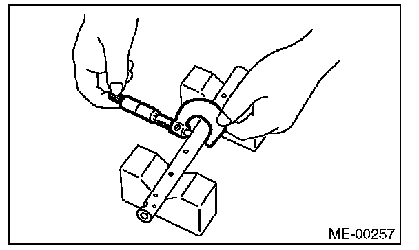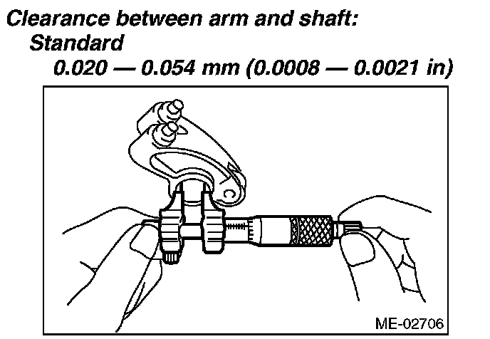 1) Measure the inner diameter of valve rocker arm and outer diameter of valve rocker shaft, and confirm the difference (oil clearance) between the two values.