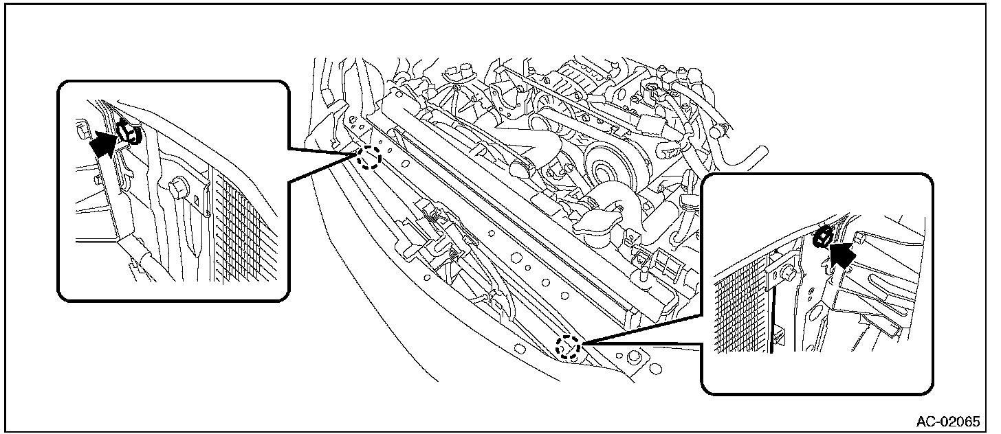 2. By lifting the condenser, pull it out through the space between the radiator and the radiator panel.
