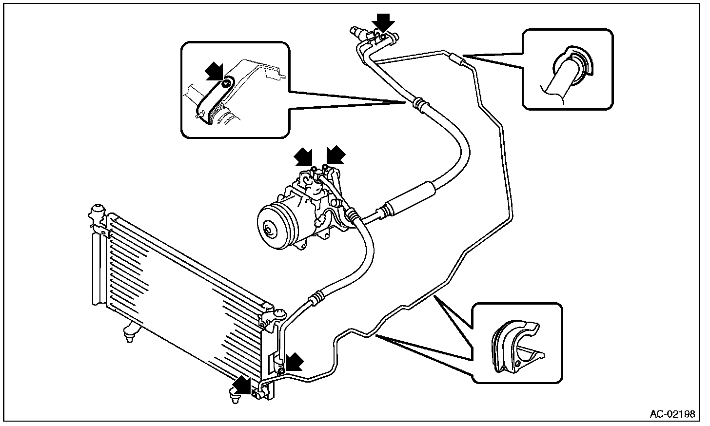 - Replace the O-rings with new parts, and then apply compressor oil.