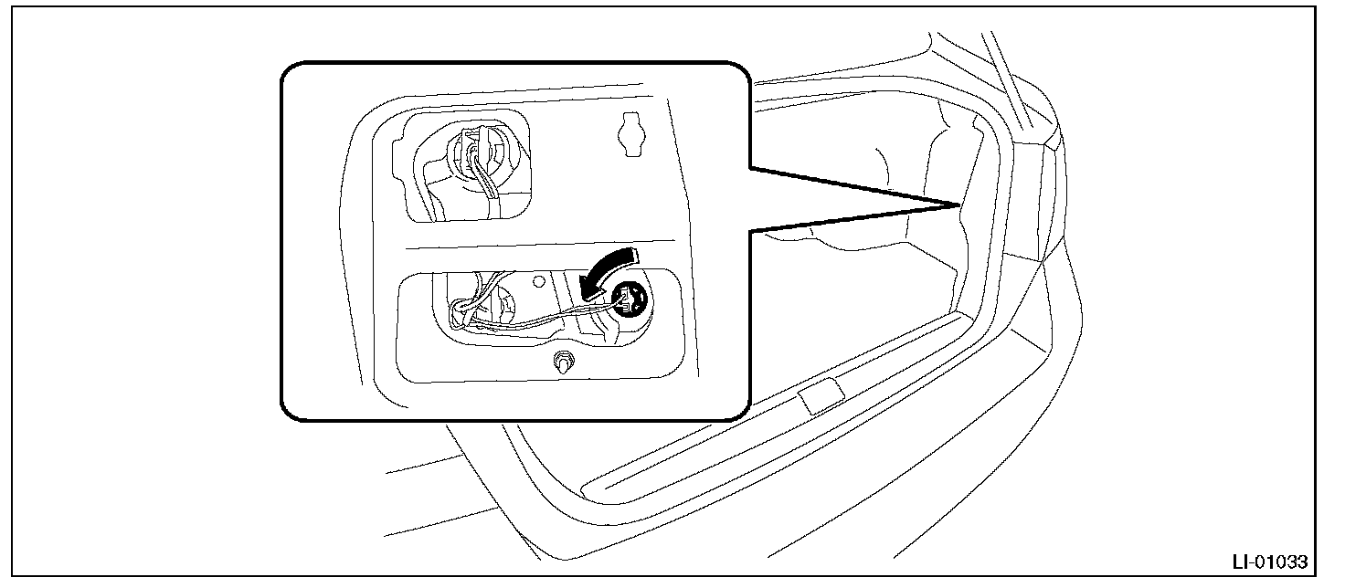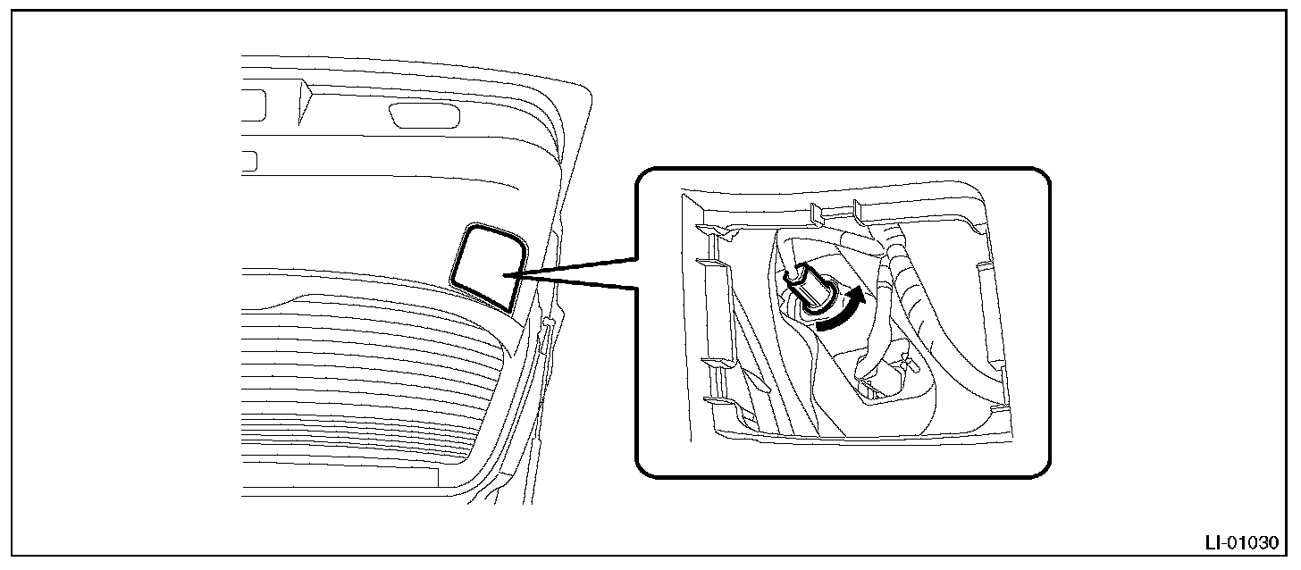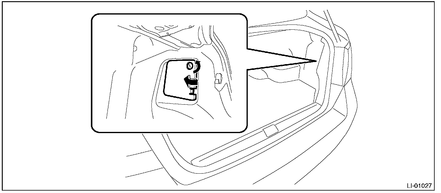 2. Release the lock and remove the bulb inspection cover of trunk room trim.