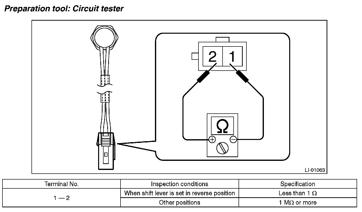 3. Replace the back-up light switch if the inspection result is not within the standard value.